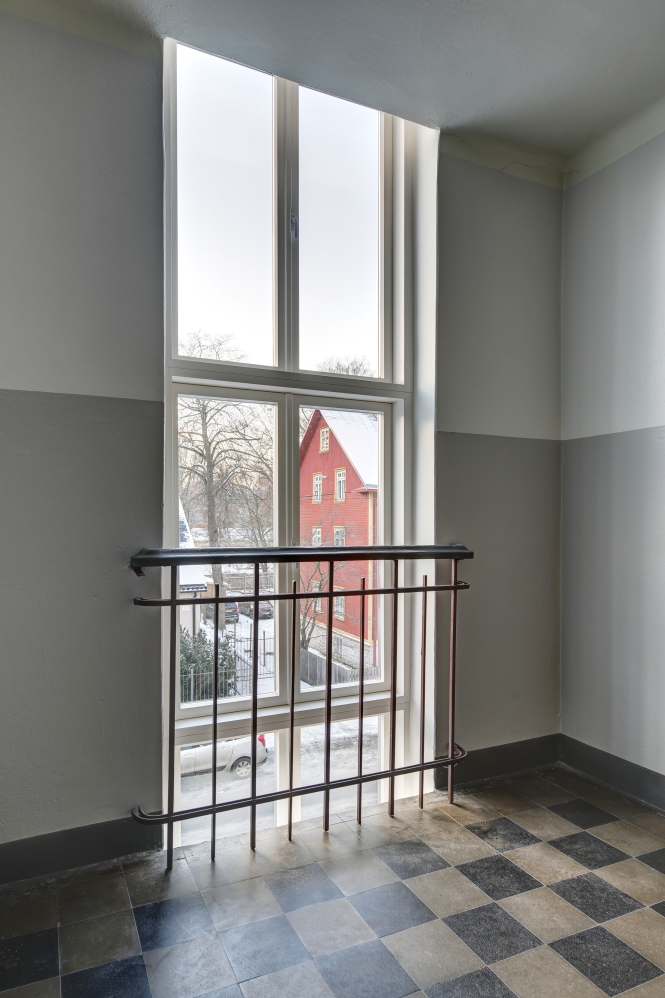 Miljööväärtusliku hoone trepikoja aknad sarnanevad originaalakende välisilmele, samas vastavad tänapäevastele nõuetele sooja- ja tuulepidavuse osas. Puitosade valmistamisel ei ole kasutatud odavamat sõrmjätkatud puitu, mis ilmastiku mõjude tõttu pikalt ilusat välimust ei hoia. Nii lengid, kui raamid on liimitud täispikkadest männilamellidest ning viimistletud kvaliteetse aknavärviga. Aknad on varustatud tihendite ja klaaspakettidega.