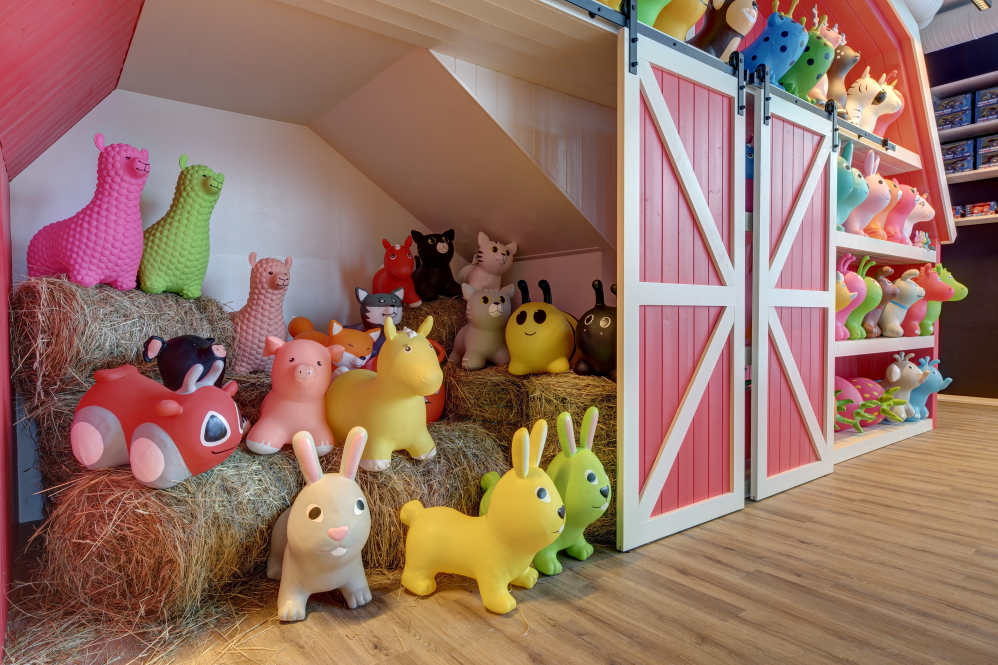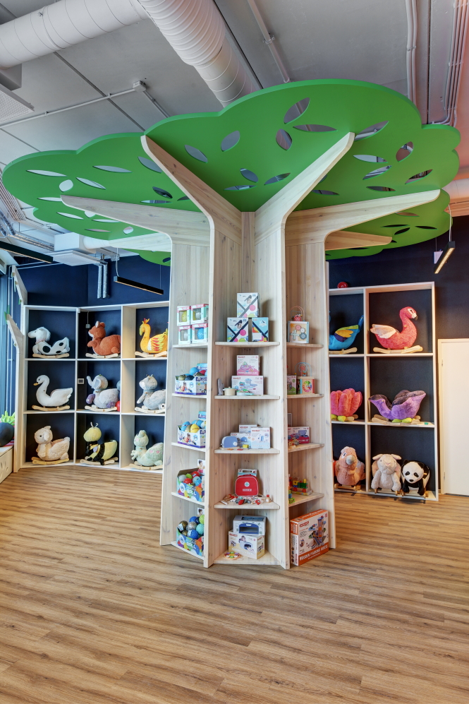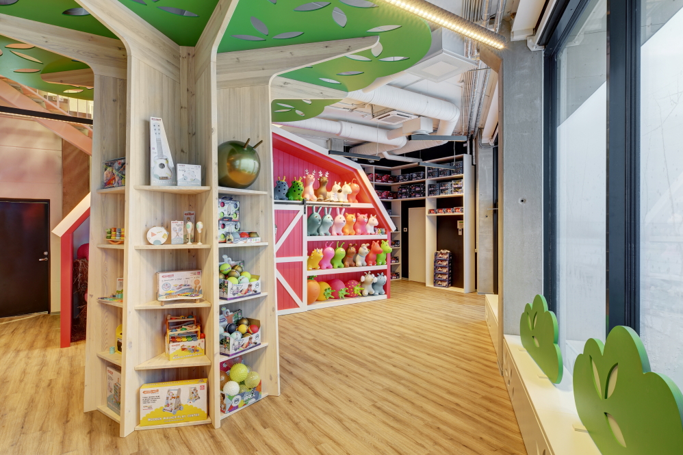 Mänguasjade tootja ja müüja Gerardo’s Toys/Karupoeg Puhh Showroom oli meie esimene sisustusprojekt, mida teha oli tõeliselt põnev. Sisustus valmis sisekujundusprojekti järgi. Riiulite tegemisel on kasutatud peitsitud või värvitud liimpuitkilpe. Puuvõra, põõsad ja radiaatori katted on värvitud MDF plaadist, millele said CNC lõikega lehekujutised. Punane lükandustega küün on valminud kohapeal puitkarkassil ja kaetud värvitud voodrilaudadega.
